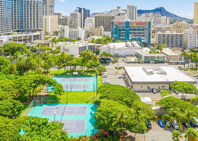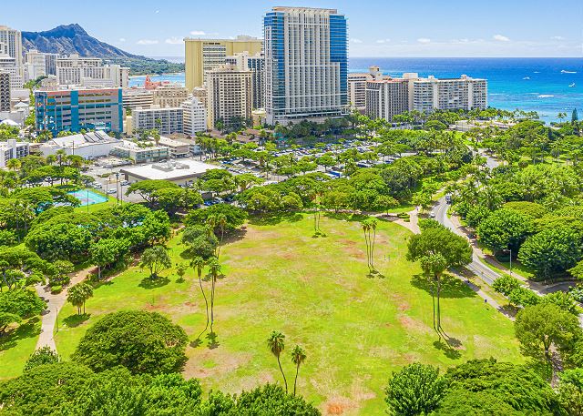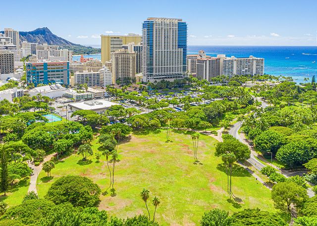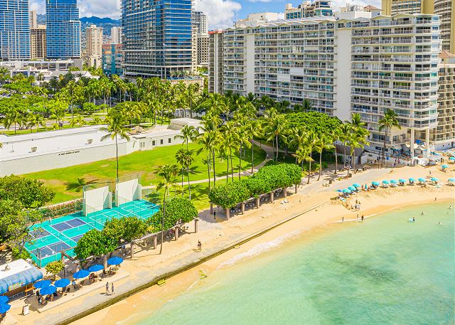 このコンドミニアムの良さは何といってもオンザビーチという立地!他のホテルやコンドミニアムとは異なり、ワイキキショアは隣が別の建物で遮られることなく、代わりにフォートデルーシー公園があり見晴らしが良く開放的です。ホテルから一歩飛び出せば人気のレストランが立ち並ぶワイキキビーチウォークはもちろんのこと、静かな美しい公園、フォートデルーシーでは複数のバーベキューグリル、ビーチサイドのピクニックテーブルなどがあるので、ロコたちに紛れて楽しいひと時を楽しむことができます。
