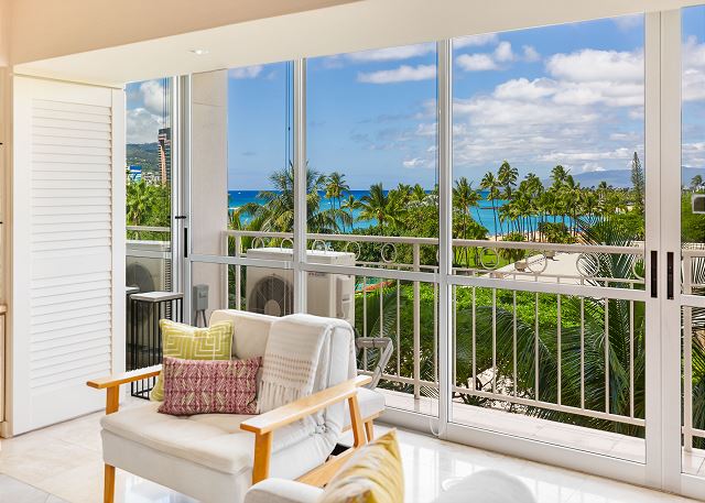 1 ベッドルーム - for 4 名様 (最大 4)1泊あたり $288 ~ $509 (税別) 最低宿泊数3泊8階、素晴らしいオーシャンビューの1ベッドルーム・1バスルームのバケーションレンタル。豪華なオーシャンビューの景色をお楽しみいただけるラナイ、開放感のある大きな窓、設備の整ったフルキッチン、静かで嬉しいスプリット型エアコン&シーリングファン、便利な室内洗濯機・乾燥機、無料室内Wi-Fiが付いているので、アメニティが充実した便利なお部屋です。