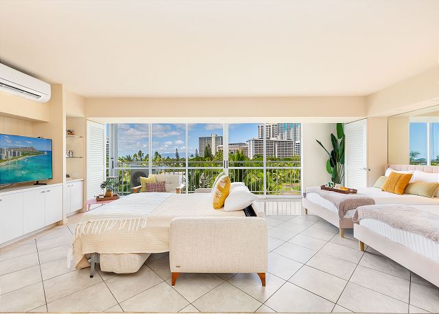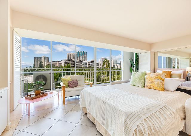 ワイキキ・ショア (Waikiki Shore) #616 - 6階/ ラージスタジオ・1バス/ オーシャン・パークビュー/ ラナイ/ フルキッチン/ エアコン/ 室内洗濯機・乾燥機/ 室内無料Wi-Fi ・