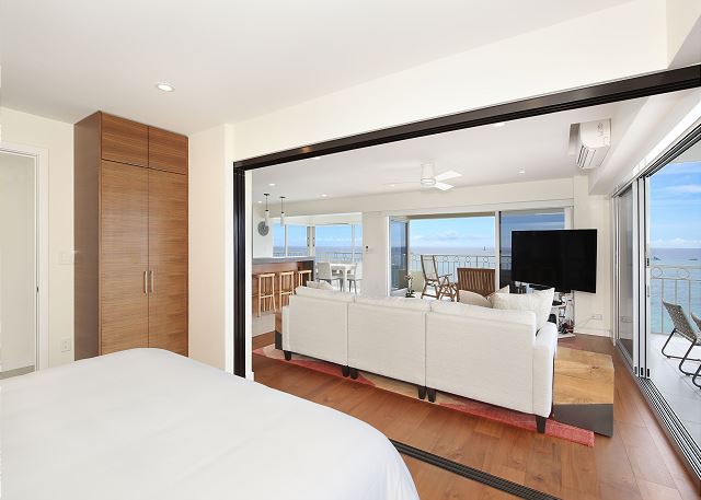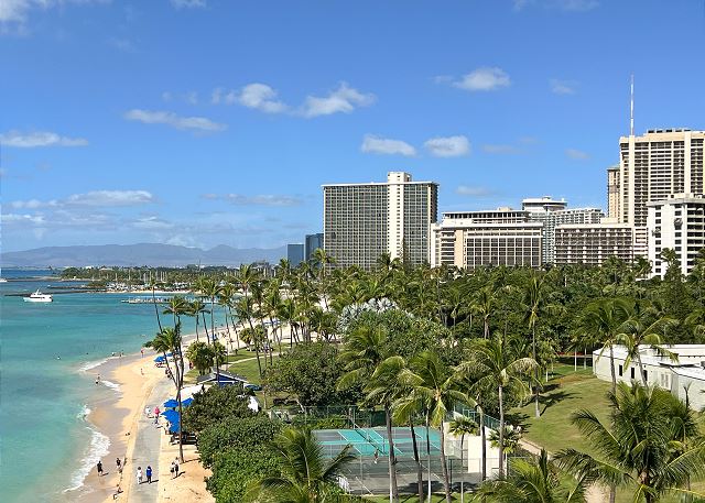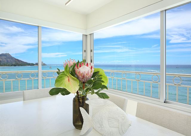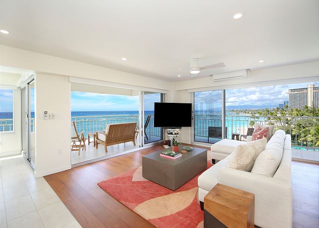 オンライン上予約は承諾待ちのリクエストとして取り扱われます。ワイキキの青い海を見渡すすばらしいオーシャンビュー、そしてコオラウの山並みの景色まで続く角部屋ならではのすばらしいパノラマ。2ベッド、2バス。涼しい貿易風、静かなエアコン完備。おしゃれなキッチン・バー。2つのテレビ。室内洗濯機/乾燥機、室内無料Wi-Fi、無料駐車場1台付き。4名様まで宿泊可。