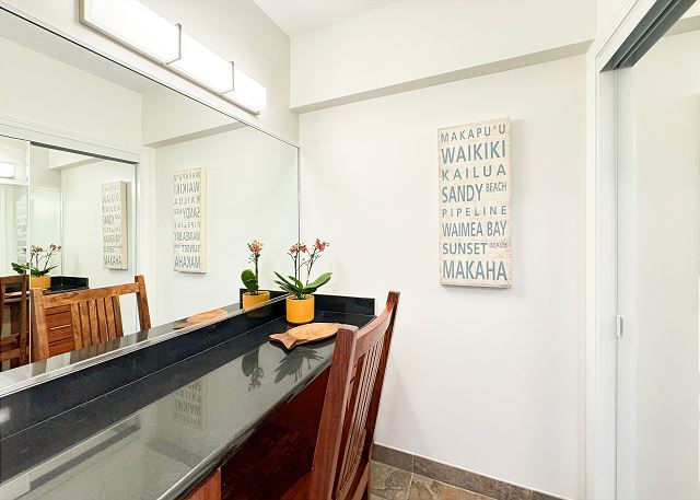 1 ベッドルーム - for 4 名様 (最大 4)1泊あたり $367 ~ $631 (税別) 最低宿泊数3泊ワイキキで唯一オン・ザ・ビーチのコンドミニアム”ワイキキショア”。6階のワンベッドルームのバケーションレンタルのお部屋は、新しく家具を入れ替え、モダンアジアンテイストにハワイらしいティキスタイルとオーナメントをアクセントにしたおしゃれなデザインです。お部屋の側面が大きな窓になっているので、とても明るい印象です。設備の整った清潔なフルキッチンでは、いつでもクッキングをお楽しみ頂けます。洗濯機と乾燥機がありますので、スケジュールに合わせて時間を有効にお使いいただけます。フルサイズベッド2台、クイーンサイズのソファベッド1台が設置されております。