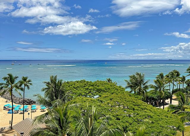 ワイキキ・ショア (Waikiki Shore) #712号室(最低宿泊数3泊)ワイキキで唯一のオン・ザ・ビーチコンドミニアム、ワイキキショアの7階に位置する1ベッドルームのお部屋は、まさに理想のハワイステイを叶えます。プライベートラナイにはテーブルと椅子が用意され、目の前に広がる美しい海と緑豊かな公園の景色を楽しむことができます。夕方には壮大なサンセットを眺めながらリラックスしたひとときをお過ごしください。室内にはキッチン、洗濯機・乾燥機、そして無料の室内Wi-Fiを完備しており、快適な滞在をサポートします。
