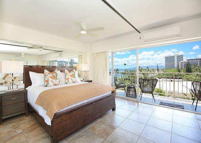 1 ベッドルーム - for 2 名様 (最大 4)1泊あたり $258 ~ $489 (税別) 最低宿泊数3泊素晴らしいオーシャンビューとコオラウ山脈のマウンテンビューがご覧頂ける改装済みのお部屋。広々とデザインされたコンドミニアムからは、緑の山並み、遠くはエバビーチそして青いパシフィック・オーシャンの海原を一望します。室内には、キングサイズベッド1台とフルサイズのソファーベッドが設置され、最大4名まで宿泊可。42インチのテレビ、フルキッチン、ハンドシャワー、温水洗浄便座、室内洗濯機&乾燥機完備。オーナーのテイストあふれる人気の有るレンタルです。無料Wi-Fi付き