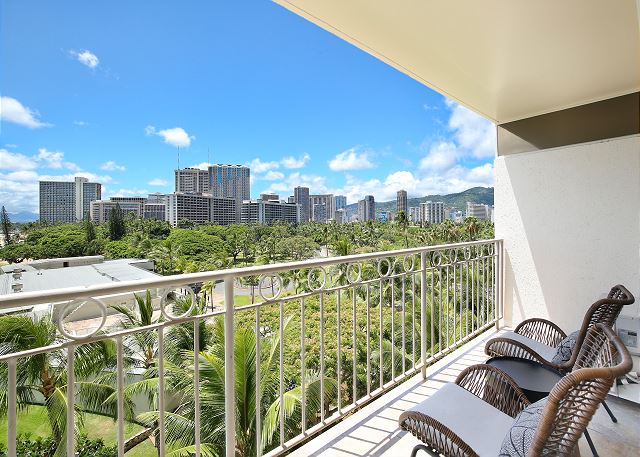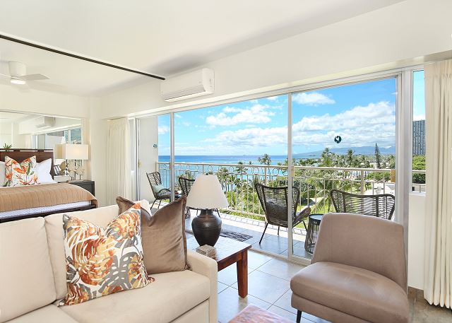 6階/ ラージスタジオ・1バス/ オーシャン・パークビュー/ ラナイ/ フルキッチン/ エアコン/ 室内洗濯機・乾燥機/ 室内無料Wi-Fi ・