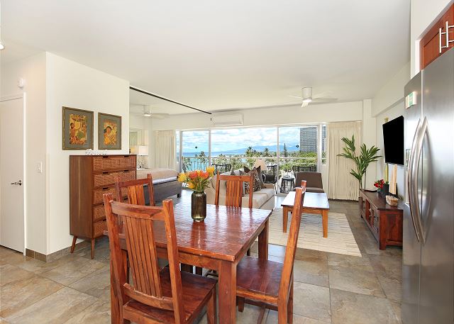 1 ベッドルーム - for 2 名様 (最大 4)1泊あたり $254 ~ $499 (税別) 最低宿泊数3泊貿易風の吹き抜ける空間を美しくデザインしたワイキキ・ショアの近年改装されたこの1ベッドルーム・1バスのレンタルは、静かなエアコンが装備され快適なユニットです。広々としたリビングルームにはソファーベッドが完備。このお部屋は、フルキッチン、ウォッシャー/ドライヤー付き。エアコン、無料Wi-Fi。遠くのコオラウの山の景色からホノルルのダウンタウン、そして西向きのオーシャンビュー!殆ど毎日美しいサンセットを見ることができます。金曜日有名ホテルの花火は本当に目の前で見れます。